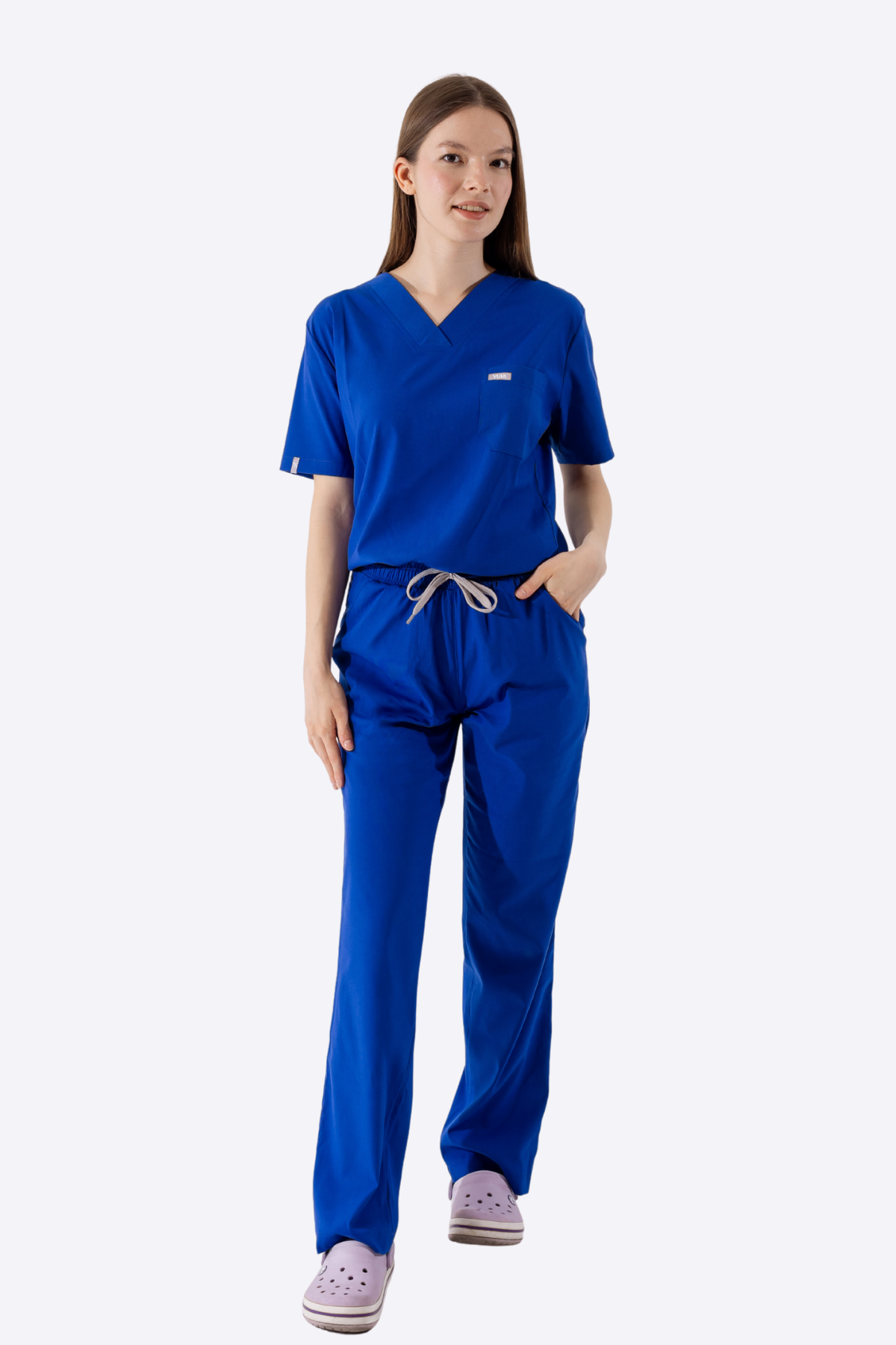 Yula Cerebrum Soft Likra Saks Mavisi Medikal Takım – esnek ve konforlu yapısıyla gün boyu rahatlık sunar. Unisex, rahat kesim, V yaka üst ve lastikli bel pantolon ile profesyonel kullanım için idealdir.